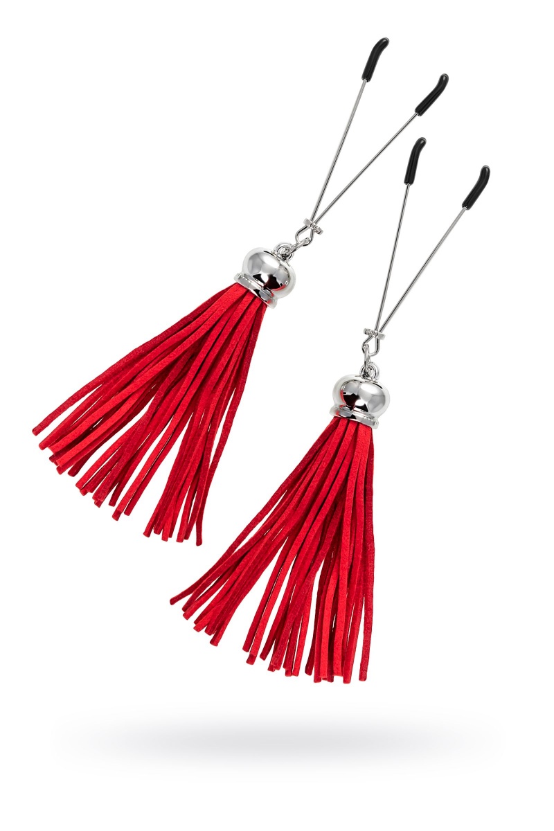 Попробуйте новые, дерзкие ощущения глубокого наслаждения! Зажимы-вилки от Pecado гарантируют смешение ярких чувств от тактильного контакта с нежной кожей сосков. Зажимы выполнены из высококачественных материалов. Металлическая часть компактная, приятная на ощупь. На концах черные резиновые наконечники, для безопасного воздействия на эрогенные зоны. Интенсивность сжатия аксессуара регулируется миниатюрными колечками. В зависимости от личных предпочтений и сценария игры, можно выбрать легкое пощипывание, или сильное сдавливание. Бахрома из натуральной замши, в насыщенном красном цвете, добавляет манящую красоту смелому атрибуту. При каждом соблазнительном покачивании груди, кисточки движутся в пикантном ритме. Также подходит для стимуляции и возбуждении в области половых губ и клитора.